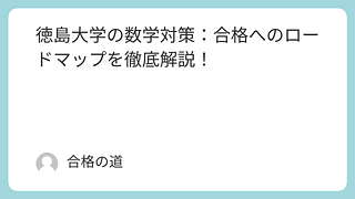 数学対策 徳島大学の数学対策:合格へのロードマップを徹底解説! 徳島大学への合格を目指す皆さん、特に数学の対策に不安はありませんか?「どの分野を重点的に学習すべきか?」「どのような問題形式が出題されるのか?」といった疑問は尽きないでしょう。しかし、ご安心ください。この記事では、徳島大学の数学で高得点を獲... 2025.10.20 数学対策