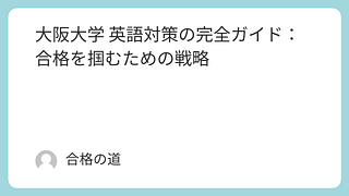 大阪大学 英語対策の完全ガイド:合格を掴むための戦略