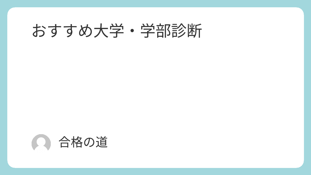 おすすめ大学・学部診断 X Facebook はてブ LINE Pinterest コピー 2026.01.032026.02.16 条件から行きたい大学を見つけよう!! ※推定偏差値につきましては、「偏差値」と「継続力」の2分野をもとに評価しております。 大学受験診断ツール Q1 文系・理系 理系 文系 Q2 学力 上位(偏差値65以上) 中位(偏差値55~64) 基礎(偏差値54以下) Q3 継続力 高い(サボらない) 普通(週1サボる) 低め(週2以上サボる) Q4 興味分野 工学 理学 医学 経済・経営 法・政治 人文 診断する