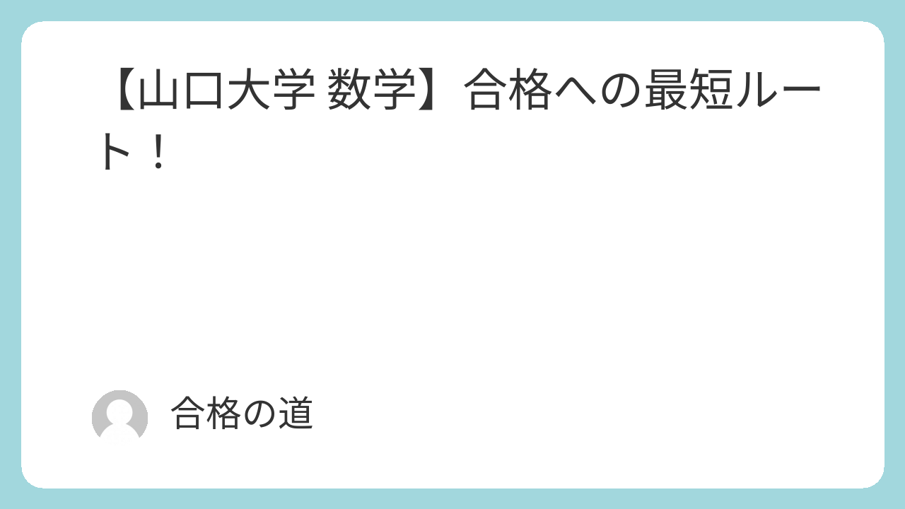 【山口大学 数学】合格への最短ルート!
