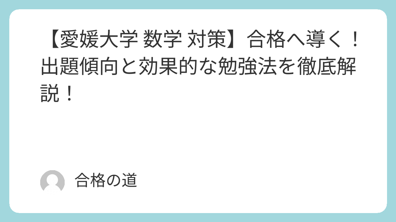 愛媛大学の数学で合格点を取るためには、標準的な問題で確実に得点し、丁寧な記述答案を作成する力が求められます。