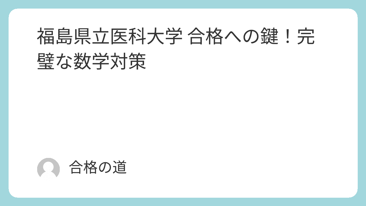 🎯【総まとめ】福島県立医科大学 数学で合格を掴む!