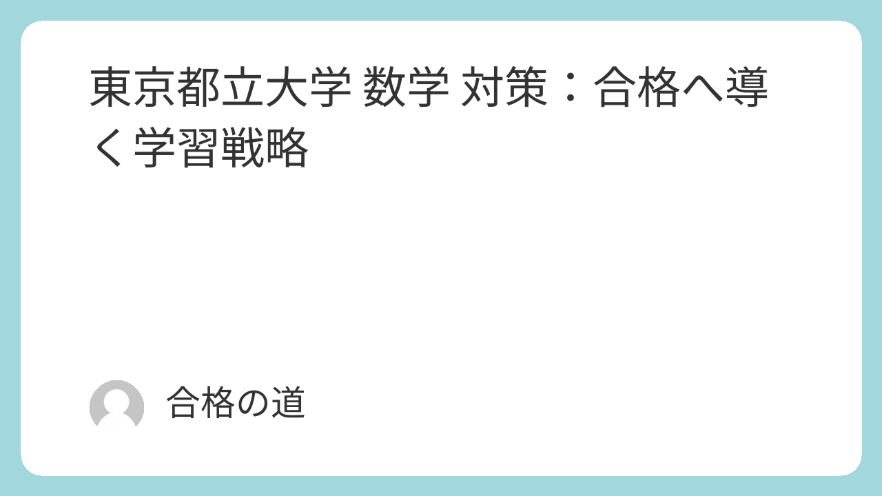 東京都立大学 数学 対策:合格へ導く学習戦略