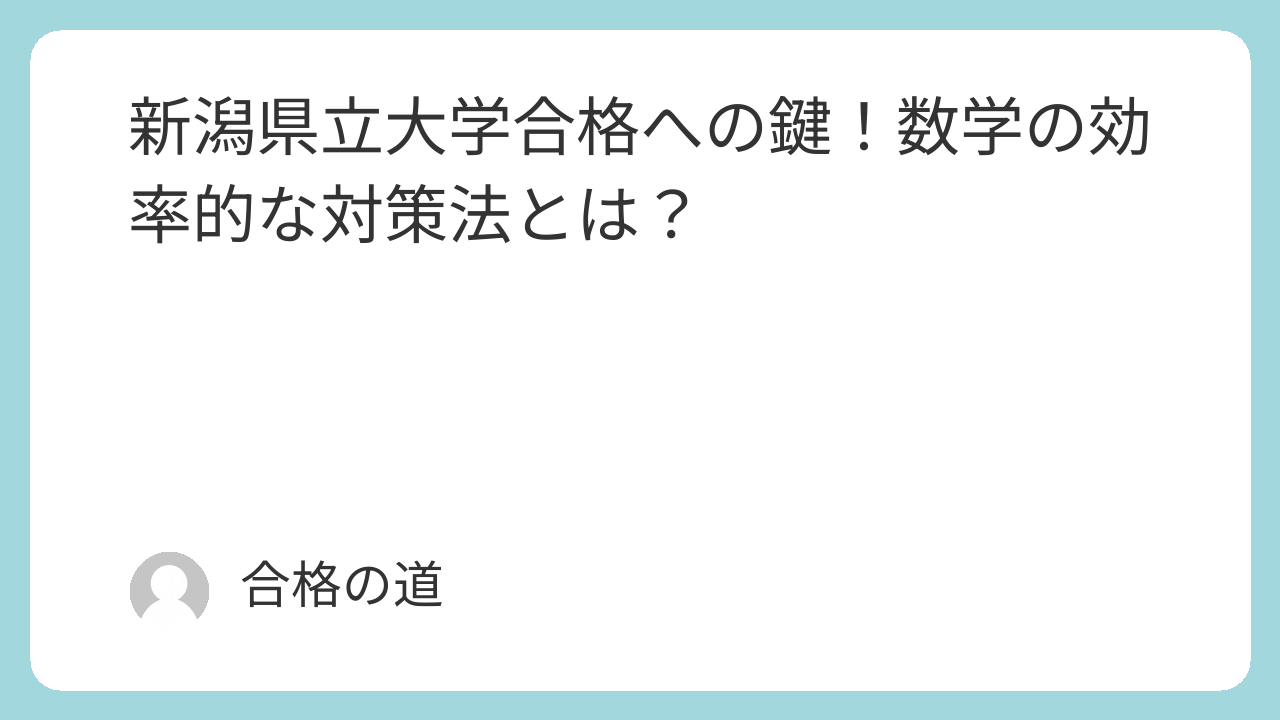 ✅ 新潟県立大学の数学対策:合格へのロードマップ