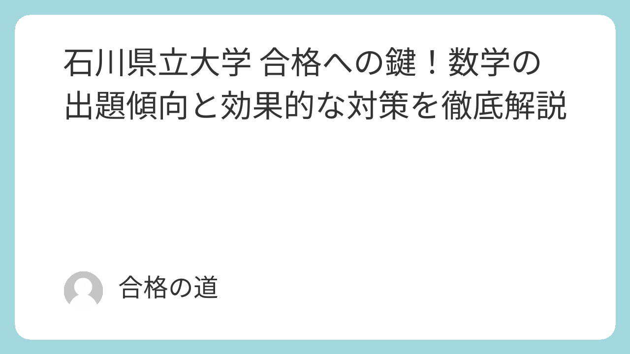 最後に、過去問演習で時間配分を把握し、自信を持って本番に臨んでください。この対策を通して、あなたの石川県立大学合格が確実なものとなるよう応援しています!