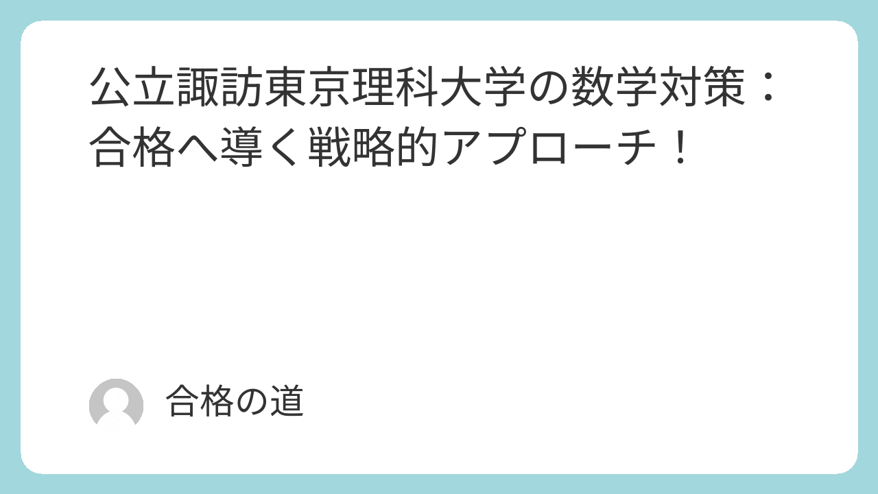 💡 公立諏訪東京理科大学 数学対策 Q&A