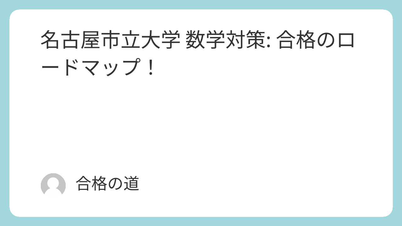 💡 名古屋市立大学 数学対策 Q&A