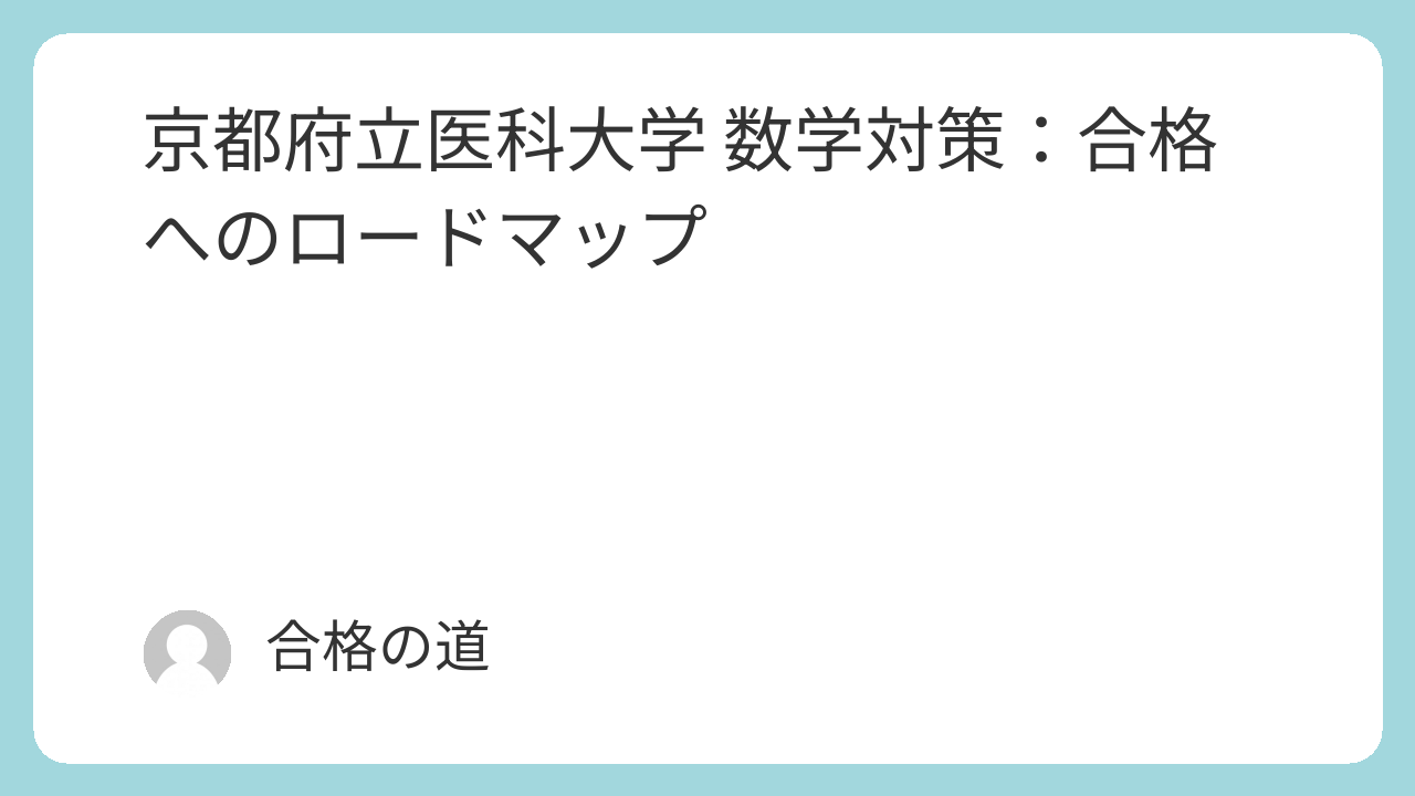 📚 京都府立医科大学 数学対策:合格へのロードマップ