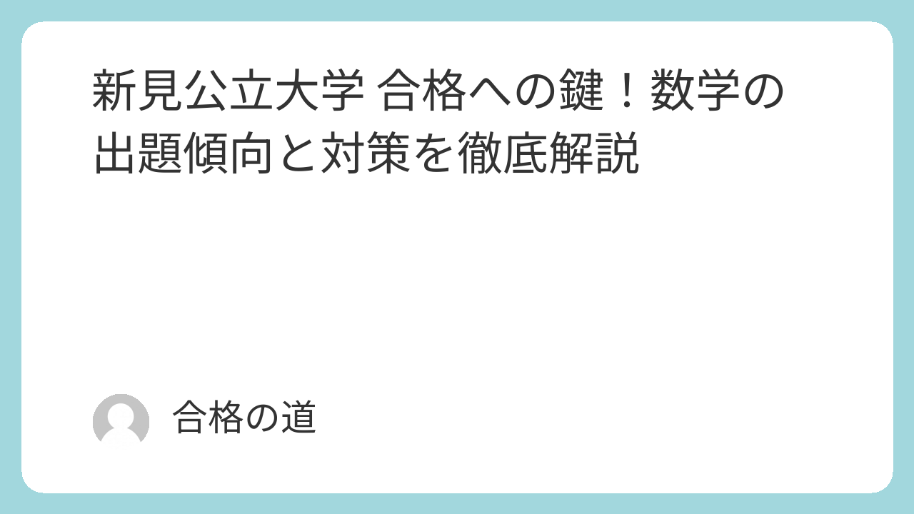 📝 新見公立大学 数学対策 Q&A