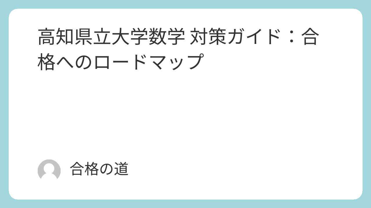 結局のところ、高知県立大学の数学で合格を勝ち取るには、「基礎の徹底」と「標準問題での確実な得点力」がカギとなります。