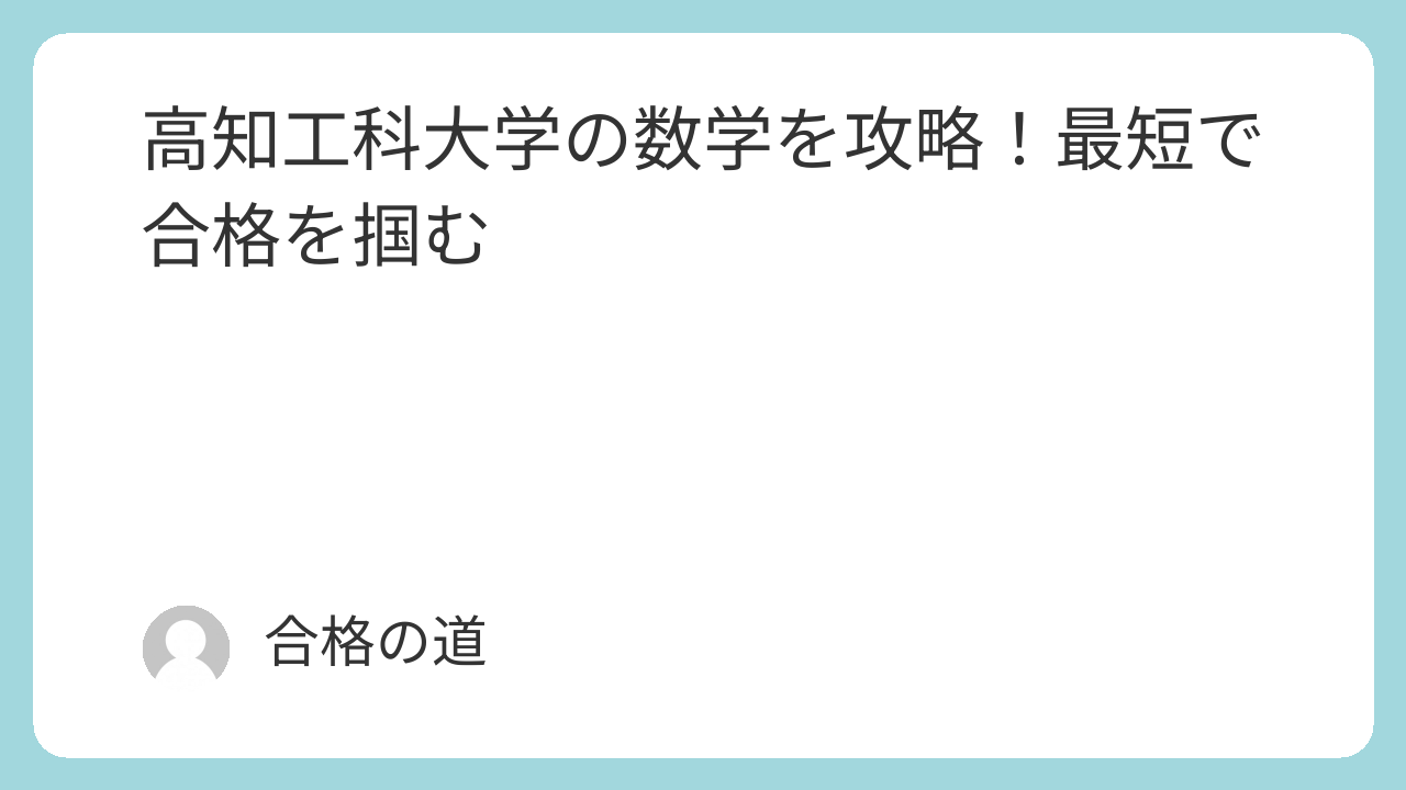 高知工科大学を目指す皆さん、数学は合否を分ける最重要科目の一つです。