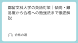 英作文問題(和文英訳や与えられたテーマについての英作文)も出題され、表現力と論理性が必要となります。 - 語彙・文法は基礎〜標準レベル