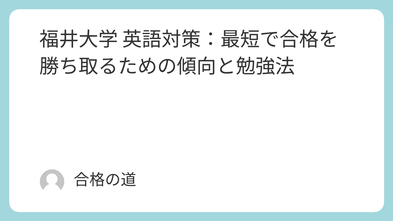 📌 福井大学英語入試のポイントまとめ