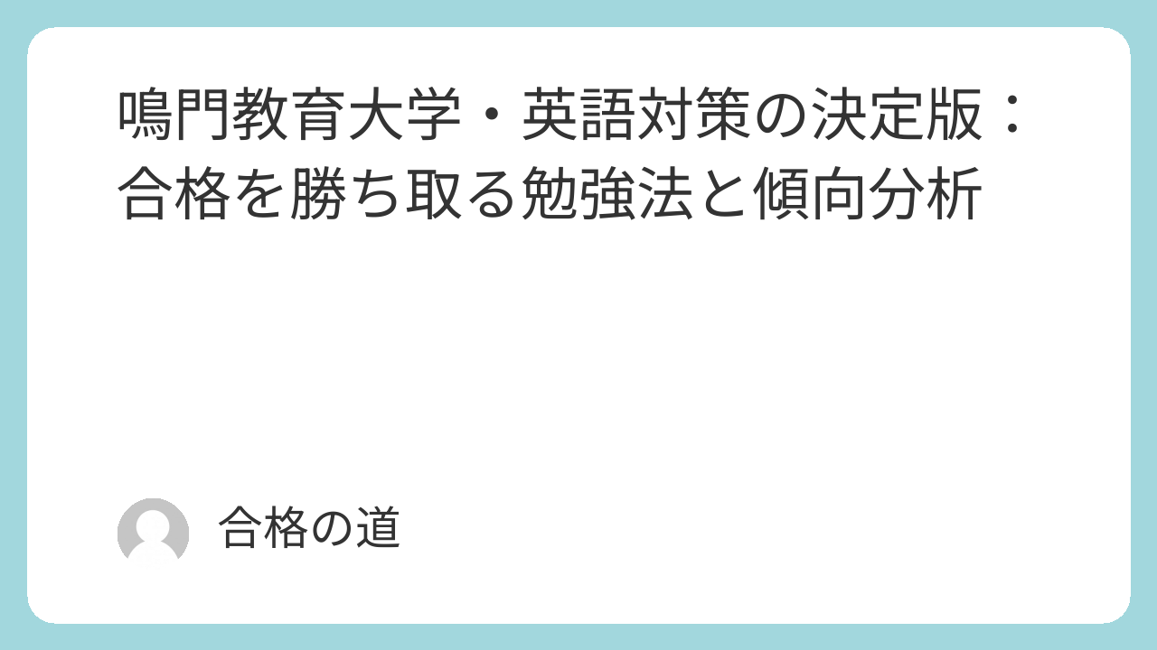 → 鳴門教育大学は教員養成大学なので、英語の問題でも教育に関する表現・論理的思考の活用が問われる可能性がある(一般的な教育系大学の傾向として)。