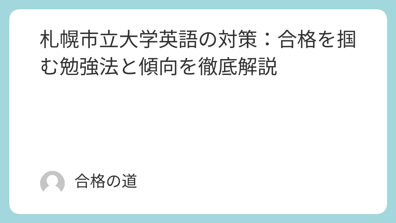 結論として、札幌市立大学の英語対策は「共通テストでいかに取りこぼさないか」に集約されます。