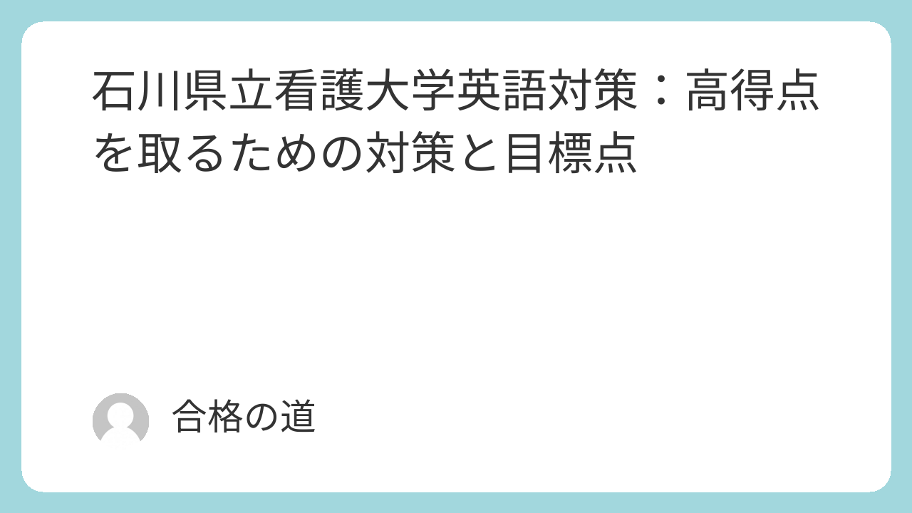 石川県立看護大学英語対策:高得点を取るための対策と目標点