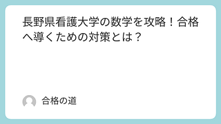 長野県看護大学を志望されている皆さん、数学の対策は順調ですか?看護系の大学入試において、数学は合否を分ける重要な科目の1つです。しかし、適切な対策を行えば、確実に得点源にすることができます。そこで、この記事では、長野県看護大学の数学の試験に...